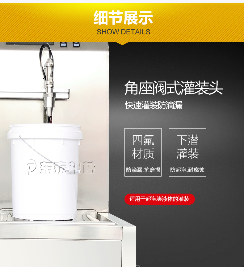 半自動油脂灌裝機可以灌裝1-20L不等的各類食用油、潤滑油等,并且半自動油脂灌裝機體形較小,移動方便,多適用于中小型 的油脂生產(chǎn)廠家,幫助廠家實現(xiàn)更快、更的油脂灌裝。半自動油脂灌裝機的兩個頭由兩個泵分別控制,灌裝量更加并且速度也大大提高。單頻變頻器調(diào)速,克服分布不均的現(xiàn)象。有極高的穩(wěn)定性,當某一站管道堵塞時,不會影響其他站,造成灌裝精度的變化。